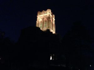 Chapel night shot. It took on the orange moon color