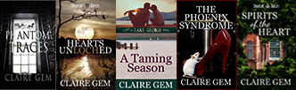 Books by Claire Gem: Phantom Traces, Hearts Unloched, A Taming Season, The Phoenix Syndrome, Spirits of the Heart