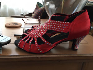 The best part of these is the all-over bling. Can’t miss the dancing feet. Not only do they make me dance, they are so comfortable and match my blingy dress. They are for rhythm dances. You know, cha-cha, rumba, samba, salsa, mambo, bachata.