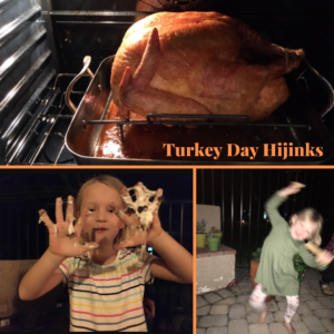 The smell off roasting turkey is everywhere. It’s kind of smothering me. I like turkey, but I don’t like to be smothered by anything—except love, of course. I may have to go to my room, but the turkey smell will probably follow me upstairs.