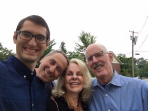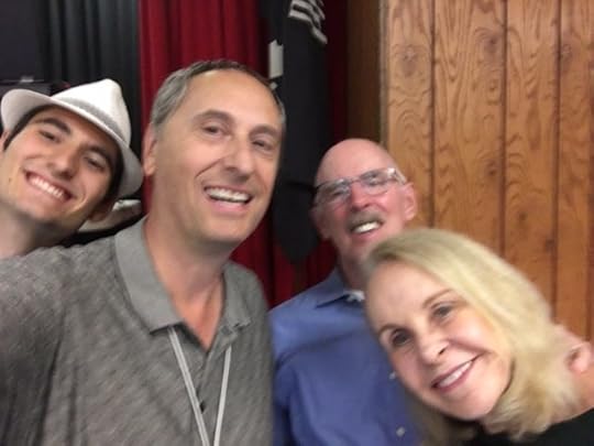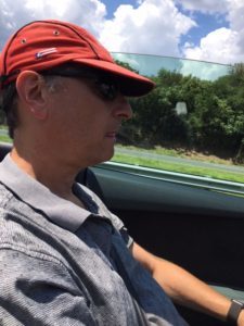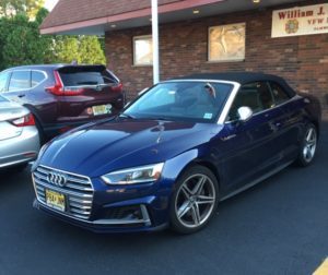 This is us Stephen, Paul, Gail, TomI love cars! A convertible has always been on my bucket list. If you know anything about cars, this one is a dream, an Audi S5, super-duper hot rod, shiny blue and it drives itself. Just what any car affection ado would want. Oh boy, I guess I could lease my own sweet dream, but who needs three cars? I settled for the next best thing, a ride in my son Paul’s with the top down. I had to fasten down my long blond hair, lacking a hat, Paul handed me a visor. Tom climbed in the back sitting sideways to stretch out and make room for his long legs. Both son and husband gave me the seat of honor, the front passenger bucket seat.