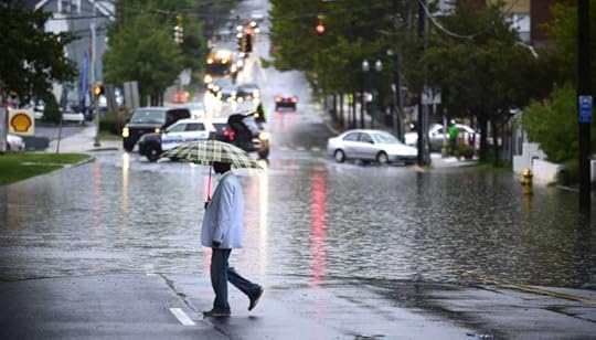 The emergency notice came loud and clear on my cell phone, Flash Flood warning. I didn’t have too far to go from the building where I had been at a meeting. My car was innocently waiting for me under the torrents of rain, so I held my so-called raincoat tight, pulled the hood over my head, mocking myself for leaving my umbrella behind, and raced to the safety of my sweet little Honda Insight. And got soaked.