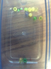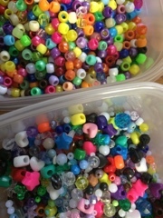 I wanted to sort out the pony beads from the others, since they're easier for preschool-aged kids to string.