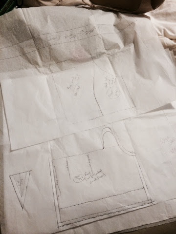 (Here is the pattern I made; I measured and drew it onto tissue paper. I've since learned that I prefer gift wrapping paper for drafting patterns, but this worked for such a small pattern.)