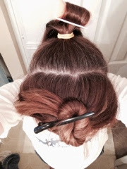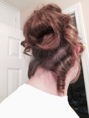 I got some really great curls, and pinned them back to add interest and finish (I hope!) to the bun.