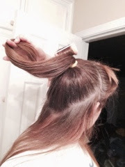 I started by sectioning off the front and back, and putting the rest into a snug ponytail.