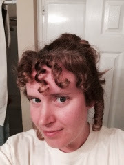 Yikes! They came out as the back curls, all tight together, and when I started separating them, they were ok, but uneven. So I wondered what would happen... I'm not a fan; what do you think? I used some smoothing hair stuff and re-grouped my curls.