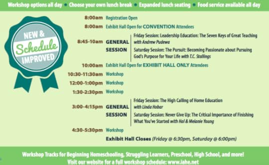 The IAHE (or Indiana Association of Home Educators) hosts a yearly convention, full of workshops, general sessions, and exhibits galore.
