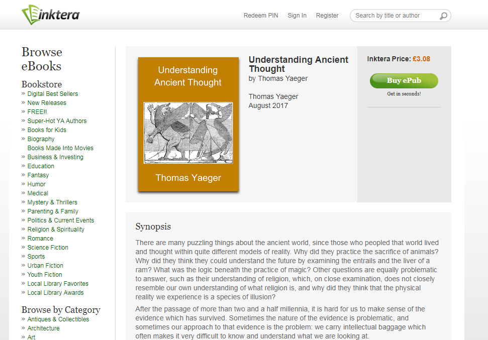 'Understanding Ancient Thought' is now available (August 20 2017) from Itunes, Barnes & Noble, Blio, Inktera, Rakuten, Smashwords, and other major ebook retailers.