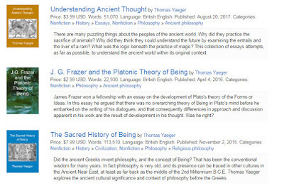 I've just finished 'Understanding Ancient Thought' (published August 20, 2017), which is intended as a companion of sorts to 'The Sacred History of Being' (published in 2015). It is much more discursive in style, and (I think) an easier read. I'm now working on a volume which looks at the same body of ideas, but within a later time frame. It is an i...