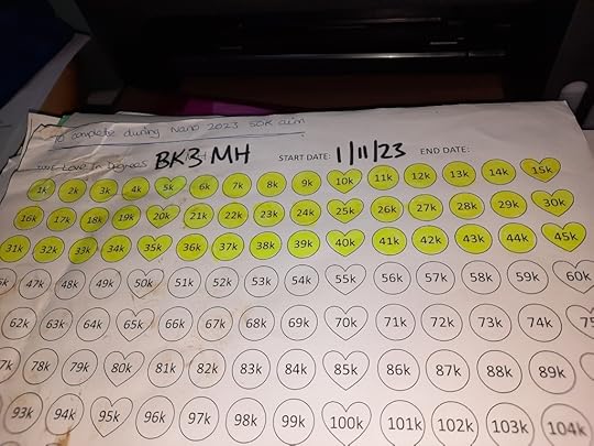 But that’s only on book 3 in my romance series and I had set myself a target of adding word count to book 2 as well. As yet, I haven’t even looked at extending the draft for book 2. That may be a task for December if I don’t get a chance to work on it before.