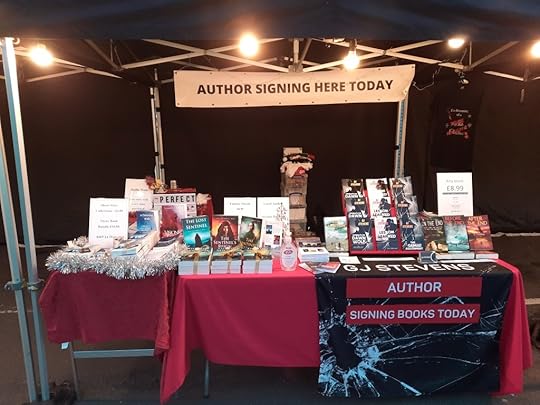 Yesterday I ventured out into the cold to run a bookstall with a fellow author, GJ Stevens. It was a local town event – Ashford Wide Christmas Fair (Surrey). We got there super early and were one of the first stalls to set up in our row.