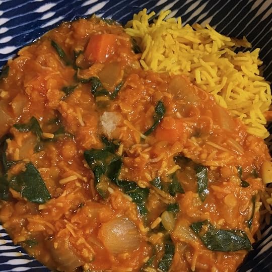 I cooked my rice with a little turmeric, cinnamon and a star anise and I will be making rice this way to serve with dhals and curries from now on - it was spectacular. Just a shake of each spice, whack in the star anise and make your rice in the usual way. As Jamie Oliver would say, happy days.
