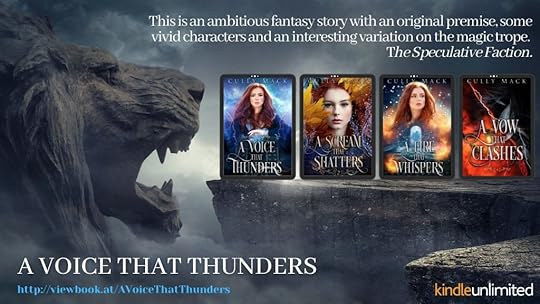 In as much detail as you would like, tell me about your book(s) that are already out/on the way.I write epic/high fantasy and my book series is called Voice that Thunders. To date, I have published four books and a prequel (Sojin). A Voice That Thunders is the first followed by A Scream That Shatters, A Fire That Whispers and A Vow That Clashes.