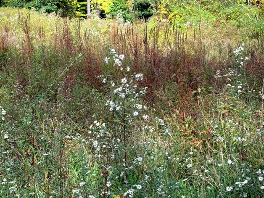 but it feels like more,like all the fields in heaven and on earth, because our path has been gilded by golden light on golden fields Butterflies, monarchs of the open meadow, pass among the goldenrod,and twine around one another, and spin off on their own questsAbove: the fertile green of a lavish regionHillsides extend their flankslike the green man of the forest reaching for the sky,embracing the valley in which we proceedon our regal, healing progressAnd higher still, beyond the deep and furry green of the treelinethe rich blue vault holds the sun in its placewhile evolving nuances of air linger like forgiveness, teaching us to be as we are and should be,Creatures who breathe in and let it out.
