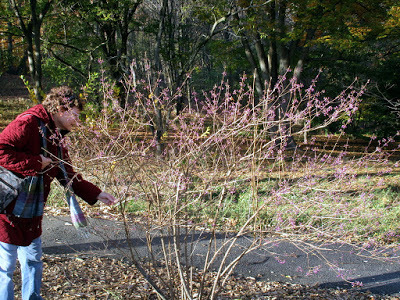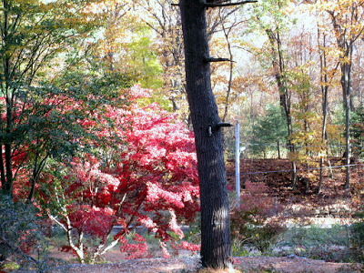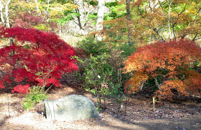 But trees, and great nature itself, are not a destructive force, but a creative force. We wouldn't be here without them. Trees created our world; they made the atmosphere breathable for the 'higher' (or more complex) animals, such as ourselves. They take carbon dioxide out the air and return oxygen to it. Their roots force seams through the rock, helping to make earth. Without plants and the microscopic allies turning rock into soil for a billion years, we wouldn't be able to grow food. We would have only the ocean to feed us, and how soon would we eat all the fish? (Oh, yeah, we're all ready doing that.) And they beautify the face of the planet. Most of the other photos on this page came from the face of November as it appeared in the Arnold Arboretum in Boston on Sunday, the first day of the return to standard time. The arboretum is a living laboratory for the Harvard University forestry school, and an amazingly curated collection of world-class trees.