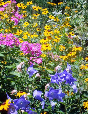 Plants in this garden, as plants have everywhere this summer, have multiplied with enthusiasm. They are doing their thing. They are shooting out their blossoms, firing the flower and fruit of their nature. They are reaching for the sun.