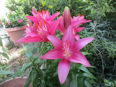 If flowering plants have a religion -- this is it. And they express it so beautifully. This is why, perhaps, some of us get wrapped up in the success, or absence thereof, of so many of the plants we spend the summer with. We desire to know how well some of our favorites -- the daylilies, say -- are going to perform in a given season. It excites me, pleases me, to notice that the most common member of this family, the native orange-blooming 'ditch lily' has spread its seed to some corner of the garden where it hasn't appeared before.