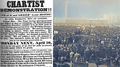 Though inspired in part by the "Revolution of 1848," a series of revolts that drove European monarchs in France, Austria and other states off the throne -- events regarded by the English royals as 'family' tragedies -- Chartists did not seek a revolution. The movement sought changes to make their country more democratic, the chief of these being universal male suffrage. Other demands included the adoption of a secret ballot to shield voters from political pressures; the abolition of "property qualification" for MPs so that voters could have a truly free choice of their representatives; and equalizing constituencies to secure the same amount of representation for the same number of electors (or "one man one vote"). These are basic principles in a representative democracy. Nevertheless, frightened by the European mass revolutions that overthrew monarchs, and afraid that expanding suffrage would weaken their own power, government leaders refused to accept the Chartists' petition. They rallied a massive show of armed force that blunted the Chartists' plan for a people's march on Parliament. I'm probably giving nothing away in pointing out that Victoria and Albert remain safely on their royal seats. Season 3, however, seems determined to make much of the royal household's panicky retreat to an island hideaway on the Isle of Wight. The Chartists' key demands were largely enacted, once again a generation later, in the 1867 or "Second Reform" Act, which gave the vote to "all male heads of household," significantly expanding suffrage for men. Women's suffrage, of course, was still a good way off. I don't know how PBS's "Victoria" will deal with her country's ongoing social and economic pressures for political reform. Or whether in-house and bedroom dramas will be allowed to dominate upcoming episodes. "Victorian" England is popularly known as the age of restrictive clothing, repressive social codes, fear of sexuality, and high mortality rates for children and women. (Also Imperial expansions, slums at home, the growth of a middle class, the birth of the realistic, socially conscious novel, Sherlock Holmes, scientific breakthroughs; the list could go on.) In other histories, I have found the period termed "The Age of Reform." But political reform in 19th century England, as perhaps in all countries, took a long time in coming.