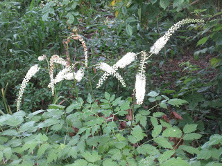 The last photo depicts woodland plant called Fairy Candles. The species name is Actaea racemosa. This is a shade plant whose long white blossoms peak in late July and early August. Like the others shown here, it brings color in a season when most perennials have quieted down.