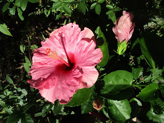 The next photo down depicts one of the smaller Hibiscus plants, this one blossoms a standard wide blossom in bright red.