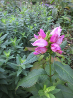 Below the photo of the white anemone, another pink to light violet flower also opens this month. This is the Turtle-head (species name Chelone glabra). The last of the perennial flowering plants pictured here are Asters, another reliable September bloomer.