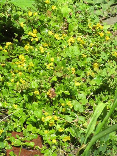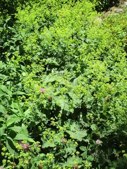 Another anonymous contributor is pictured at the bottom of the post. A hardy groundcover, it creeps close to the earth and puts up yellow flowers for a couple weeks in June. Lady's Mantle, below the putative Fleabane, appears perfectly content with its ration of sunshine, offering plenty of pale yellow flowers in the months of May and June. Unlike most summer perennials, it spreads horizontally rather than shoots up vertically.