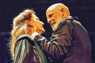 Some aspects of Shakespeare's great political tragedy "Macbeth," director Melia Bensussen writes in her notes to the current production at Shakespeare & Company in Lenox, Mass., "resonated... with our cultural moment." Indeed. Would that 'moment' be the one when our current Usurper sells out his country's interests, alliances, values, and national pride to the two-bit totalitarian gangster who currently runs the long-running catastrophe generally known as Russia? "I thought about what moves and frightens us as contemporary audiences," Bensussen writes, and cites "how Macbeth's ambition, and belief in his imagination, lead to his destruction." She quotes the estimable literary critic Harold Bloom: "(The Macbeths) delight in their wickedness... Shakespeare rather dreadfully sees to it that we are Macbeth; our identity with him is involuntary but inescapable." Since 2016 there has been only one dominating influence on our 'cultural moment.' I won't say the name of the devil, but you know who I mean. What else can be meant by the 'cultural moment'? Me-too? The sins exposed there don't appear to have a precursor in this play since the only woman who matters, Lady Macbeth, is more actor than victim. You can see the "delight" Bloom speaks of in Bensussen's direction when Lady M. laughs in the course of her encouragement of her husband to murder and usurp. To throw caution to the winds and have the 'courage' to risk all for the prize of royal power, and be ruthless in obtaining it. They're playing the game of houses (or "Game of Thrones" as the TV series called it). Among other contenders for the Scottish crown we must count the head (Duncan's) currently wearing the crown, whose necked is saved by Macbeth's defeat of the rebels. Banquo, Macbeth's comrade in arms, is another rival. When we first meet Macbeth, he is triumphant in a just cause and likable. A furiously competent warrior, he takes pains to share the credit for the victory with Banquo. But Banquo must be eliminated because of the witches' prophecy. Though he will not become king himself, they prophesy, his descendants will. Our hero-villain naturally prefers his heirs to sit on the throne (even though he doesn't appear to have any). Other threats to his power include Duncan's son Malcolm. Suspecting correctly that he's a likely target of the conspiracy that murdered his father, he flees the castle before the Macbeths can take a run at him. Then there's Macduff. Though he evinces no appetite for the game of thrones power, simply because he is a name, a power center that might some day ally with Macbeth's enemies gathering across the border in England, the logic of tyranny says he must be eliminated. Ask any tyrant in our own season. Ask North Korea's Kim. Ask Putin why the oligarchs must be cut down to size before they become too popular or influential. Ask the Chinese Communist Party why no religious groups may operate in their country, no dissenters question their policies. Unlike history's more famous tyrants, Shakespeare's Macbeth has something they don't -- a conscience. An unavoidable capacity to experience, to feel, the reality of what he's doing. After he has Banquo murdered, Banquo's ghost ("in his blood") turns up at the dinner table. Macbeth's pathetic breakdown at the appearance of this ghost is black humor. Bensussen's production plays it for all that it's worth -- and then some; running the entire scene through twice. First with Banquo's ghostly appearance viewed by the audience. A second time with no 'ghost' on stage; the way, that is, the other guests would have perceived the occasion of Macbeth's mad-guilty ravings. The word the play's scholars use for this inconvenient capacity in a ruthless usurper is "imagination." Bensussen writes, "Macbeth too strongly believes in his own imagination..." He can, clearly, imagine himself king. But he can't help seeing the cost. To go back to that quote from Bloom: "Macbeth suffers intensely from knowing that he does evil, and that he must go on doing ever worse." Those last few words nail it. It's not enough to kill Macduff; you must kill his wife and children as well. No potential enemy can be left alive. Just as, to take a current instance, it is not enough to deny refuge to frightened people fleeing a threat to their lives. You must separate them from their children when you throw them in jail. That will show them. They won't try coming here again. But Macbeth, as I see it, chooses the path he does because he convinces himself that 'destiny' accords with his own desire for the crown. And, of course, the three witches help with that convincing. "Hail to thee, thane of Cawdor!" they greet him, before Macbeth has learned that Duncan has bestowed this title on him -- and "All hail, Macbeth, that shalt be king hereafter!" But the witches are (as they do again in a later scene), "equivocating" -- to use a term of moment. Shakespeare's moment that is. In the aftermath of the infamous "Gunpowder Plot," a terrorist plot to destroy King James I and the leadership of England's Protestant government, investigators faced the pernicious doctrine of "Equivocation." The doctrine taught that it was morally lawful to swear to civil authorities that you are telling the truth, but also to hold back essential information if you have good reason to that accords with your religious faith. So if the sheriff asks you, "Did you hide a priest last night?" you can swear that you did not, because actually it was your son or your wife that hid him. And because, as a believer in the old religion -- Roman Catholicism -- you believe God's law smiles on this deed of withholding truth for a higher cause, rather than forbids it. This is why the word shows up in Shakespeare's play and why the director of this "Shakespeare & Company" production has her actors emphasize it so strongly that it becomes a laugh line. The witches equivocate to Macbeth by withholding the whole truth with a clear intention to mislead when 