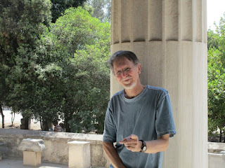 Anne Meyerson, my wife, posing under a statue of the goddess of female strength and wisdom in Paris. Here's a quote from my notes: