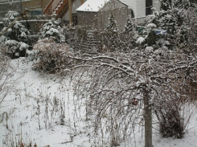 January is pretty much a black and white month. A very light, but pretty snowfall two weeks back turned our Quincy neighborhood into a 19th century village. Very quiet; nothing moving. Softly falling snow in big visible flakes, many of them dusting the exposed surfaces of the bare trees, a graceful effect magnified by the presence of evergreen trees and shrubs. We may not be able to count on a White Christmas very often these days, though all the old pictures and nostalgic movies always give people a white Christmas. But we generally have a lot of white days, and often weeks, in January.