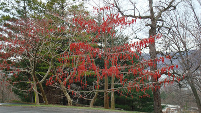 As the first two photos on the left side suggest, cardinals (a female in the top picture), are extremely picturesque against New England snowfalls. But most winters snow comes and goes. Last Saturday night's snow was half melted by Sunday noon, and almost completely gone by Monday. Today's temperature topped off at a record-territory seventy. We used to call that an 'unseasonable' temperature -- but does that expression really make sense any more? As global warming makes our winters a little more welcoming for migrants from the south, it also causes more frequent and extreme fluctuations in weather conditions.