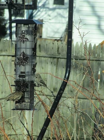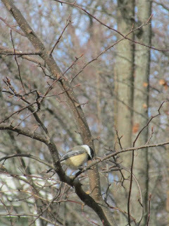 The chickadee in the next photo down has been a big fan of the bird feeder this year. They're quick to the feeder, competing with sparrows and other bigger birds, and quick to get out of the way when the next seating arrives. The chickadee's cousin, the Carolina chickadee, is reportedly on its way north.