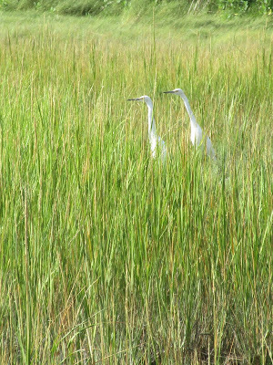 Some years they're more plentiful in Quincy's marshes and shorelines than others. Generally I see a few on the broad salt marsh neighboring Wollaston Beach. The harbor waters flow underneath busy Shoreline Drive and fill the channels of the marsh as the tide comes in, draining them as the tide goes out. The egrets need water shallow enough to wade in, standing motionless on those stick legs to wait for prey. But deep enough so the tiny sea creatures they feed on will be moving up stream or down.