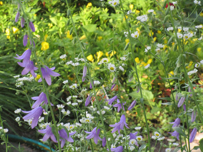 What are those those blue-bell shaped flowers (second photo down) called that grow almost everywhere? I never knew their name and I don't remember planting them, but they grow almost persistently as daylilies, including in place (such as graveled surfaces) where almost else does. And they last for weeks.