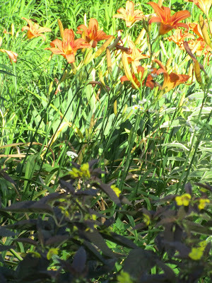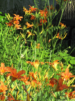 It's time for our mid-summer perennials to lift up their banners and show their colors. I generally think of this time of year as daylily season. The native orange-blossoming daylily (top photo) is strong, reliable, spreads, makes babies and are so common along country roads they're called "ditch lilies." They stand behind most of my photos of July, backing up whatever else I decide to focus on.