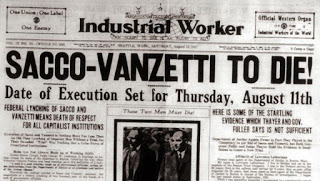 When I speak at libraries about "Suosso's Lane," I begin with a brief introduction connecting the novel to the infamous Sacco and Vanzetti case. (I'll be speaking at Carver Public Library, 2 Meadowbrook Way, Carver MA this Saturday, May 14, 1 p.m.)