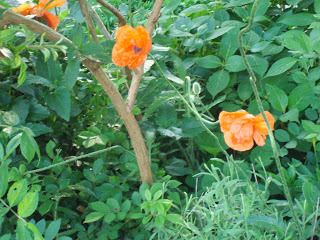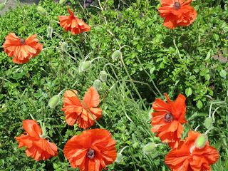 The tightly rolled iris blossoms (photo at left) in the back garden were just about to unfurl themselves as well. (They've bloomed by now: oh dear, I'm missing it.) One was just beginning the blooming process when I caught it on camera Friday afternoon. People aren’t blue on this planet, but I’ll confess to finding a resemblance in the bud’s mis-en-scene profile to Boston Celtics guard Marcus Smart. The poppies, crammed into a portion of the front garden are beginning to take over all available space (second photo down). They must like growing thickly; the other option I’ve known from this variety, Icelandic poppies, is not to grow at all, so I’m glad it’s chosen to proliferate in its erratic long-necked style. We see lots of poppies, same color, about the tenth of the size growing close to the ground in Lebanon’s hills.