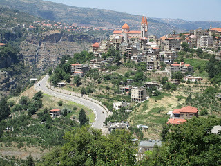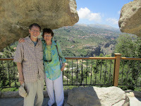 Our tour had three major stops: the Kahlil Gibran Museum, the Cedars Reserve, and the St. Anthony Monastery. Gibran, taken to America by his mother as a child, studied art in the US and Europe. His work centered on the human figure in symbolic poses representing his own personal-mystical philosophy of human life – observers have noted the resemblance between his work and that of the prophetic art of William Blake – and he did not exhibit it publicly. After his death those looking after his legacy bought the property as a museum for his artwork and a resting place for his tomb. We took photos of the museum's exterior and views from one of the beautiful natural situations imaginable; no photos were permitted inside. We also visited the Cedars Preserver where the oldest Cedars of Lebanon are protected, studied, numbered and otherwise glorified, a site where the country is seeking to restore the cedar forests that once blanketed hillsides in this region. We saw the oldest of these trees, once reported to be 1,800 years old. The last stop was an even more dramatic site, the recently restored monastery of St. Anthony of Quzhaya, consisting of stone buildings built into the mountain side, with caves turned into places of worship. Today visitors can tour these places, including a library, hermitage cave, and a cave-like museum that houses a 16th century printing press that printed a Bible in the Syriac language to escape the notice of Ottoman authorities. I’ll post some images of this site and the Cedar Reserve in a later posting.