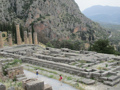 We climbed the Sacred Way to the Oracle at Delphi. In Ancient Greece, Athenian generals asked the Delphic oracle how to defeat the invading Persians. "A wall of wood," they were told. They built a navy and defeated the invaders, keeping Greece free of control by the Persian Empire.
