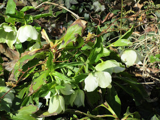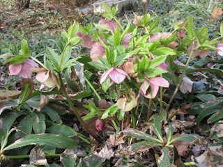 These pink-tinted Lenten roses, so named obviously because that's the time of year they start new growth and show their color, are also known as examples of hellebores (third and fourth photos down). If Lent starts in February, in most climes you'll these blossoms then.