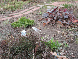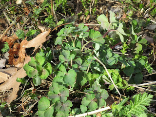 The columbine. Again, an early bloomer. I'm happy to see its leaves looking so vibrant. I'll try to remember to cut down everything around it for a month or two to give this plant enough light to shine in early May when its wild-woodsy blossoms show and grow.