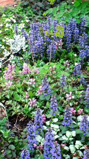 I have no name for these little blue guys who pop up in the last days of March amid last year's uncleared brown leaves and the green vines of the vinca. I simply call them star flowers. (second photo).