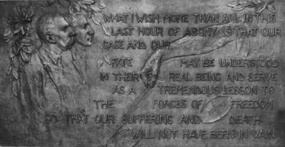 In 1928 Gutzon Borglum took time out from turning the face of a South Dakota mountain into the Mount Rushmore National Memorial, bearing the faces of great American leaders, to create a 7-foot long low-relief sculpture depicting two famous faces of contemporary America, Sacco and Vanzetti, along with a quotation from Vanzetti's last words. The famous sculptor intended to give this work to the City of Boston for public display. The site of the two Italian immigrants' execution just the year before (Aug. 23, 1927), Boston was in no mood to accept such a gift in 1928. Attempts were then made to present the sculpture to city officials in 1937, 1947 and 1957 to Boston mayors or a Massachusetts governor without success.