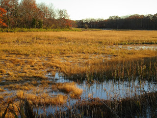 When the leaves come down, and most of the flowering plants in our garden have given up their blossoms for seed, it's time to visit the salt marshes by the shoreline at Wollaston Beach. If I haven't been there for a while, the wild outdoor atmosphere and the scent of the air makes feel that I'm stepping out of a personal closet and entering the world. You can't live on first impressions, not matter how stirring, but the experience of waking up the senses is inevitably worth the trip. Along with the clean air, and the nearness of the sea, the air holds hints of decay, the dry fragrance of dying leaves, the slight wet stink of a narrow path through tall grasses, with its muddy spots and the semi-land, semi-water landscape of the adjoining salt marsh never more than a few steps away.