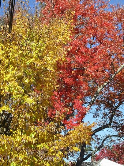 One of the best moments in autumn is when a big flotilla of leaves falls from some tall, handsome, colorful trees on your block, neighborhood, or especially right in front of your house, spreading their still vibrant colors all over your pavement.