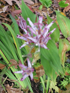 The last of the perennials, the spotted toad lilies, maked a belated appearance. Autumn, we hardly knew ye.