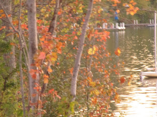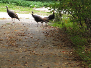 We did some more other, modest hikes as the weather grew milder and the autumn color grew stronger each day. Some wild turkeys took advantage of the fine weather to cross the cottage driveway. We counted about fifteen all told, but I could never get my camera to work fast enough to catch more than a couple in a frame (bottom photo).
