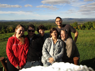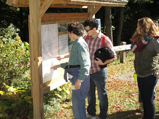 The next day took us to Kennedy Park. That's Anne, Saul and Emma (Saul's friend) inspecting the map of the superb wooded, trailed, and mapped Lenox park (sixth photo). From a prospect created by the power line cut, we look down on farmhouse far below (eighth photo). Our next stop, known as the 'overlook,' from which we can see Mount Greylock to the north, led to photo opportunities from the shed-like structure which overlooks the thickly treed hills that now hide most of the summits on the horizon. Photos were taken here: Sonya and Mourad (second from last photo). Emma and Saul (fifth photo down).