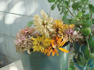 The temperature wasn't very cold, but it took over a day for the snow to melt, and then the temperatures at night plunged below freezing. Plants died, massacred; turned gray, lost their stuff. I didn't respond fast enough. I had left most of the large houseplants outdoors; they always came indoors in November. It was too cold and snowy and wet for me to deal with them then.