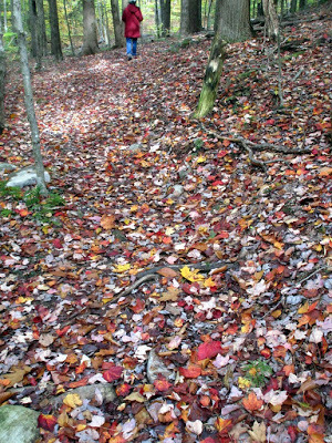 Anne walks on a carpet of fallen leaves